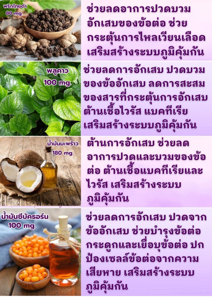 และลุงสั่งมาทานเพิ่มอีกโปร 4 แถม 2 พอทานไปแล้ว เข่ารู้สึกเบาขึ้นและเดินได้คล่องขึ้นอย่างเห็นได้ชัด อาการปวดข้อเข่าก็ดีขึ้นเรื่อยๆ ตอนนี้ไม่ต้องพึ่งยาแก้ปวดบ่อย ๆ ลุงสามารถเดินไปทำสวน ไปเที่ยวกับลูกหลานได้อีกครั้ง และรู้สึกว่ามีแรงทำกิจวัตรประจำวันได้เหมือนเดิม ลุงทานต่อเนื่องจนหมด ตอนนี้ไม่มีอาการเลยครับ และลุงหยุดทานมาสักพักแล้ว สำหรับใครที่มีอาการปวดข้อเข่า ข้ออักเสบ หรือมีคนใกล้ชิดเป็นแบบลุง อยากให้ลองครับ